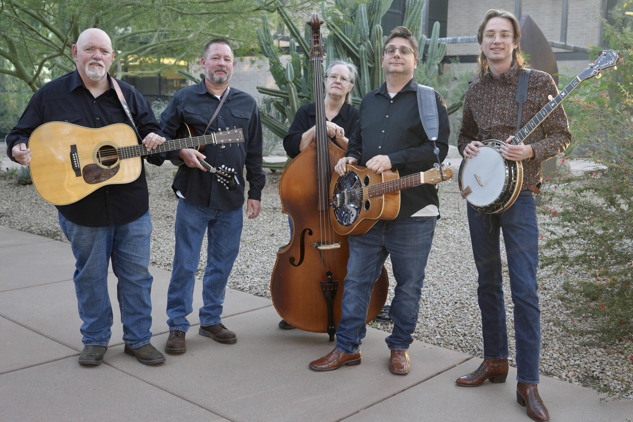 Three-Legged Dog is a trio of Phoenix-based multi-instrumentalists who play a variety of old-time, early country, bluegrass, gospel and blues - Americana, or roots music - on guitar, banjo, mandolin, Dobro, bass, cello, accordion and fiddle.Three-Legged Dog is today’s version of the string bands that existed all about the country in the Thirties and Forties, groups that played everything – oldtime mountain music, blues, ballads, devotional and dance music, jazz, pop tunes of the day – on acoustic instruments. The Dog takes to the stage with anywhere from sixteen to twenty instruments including multiple guitars, banjos, mandolins, accordion, bouzouki, harmonica, stand-up and fretless electric bass, Dobro and Hawaiian guitar, cello, and fiddle.