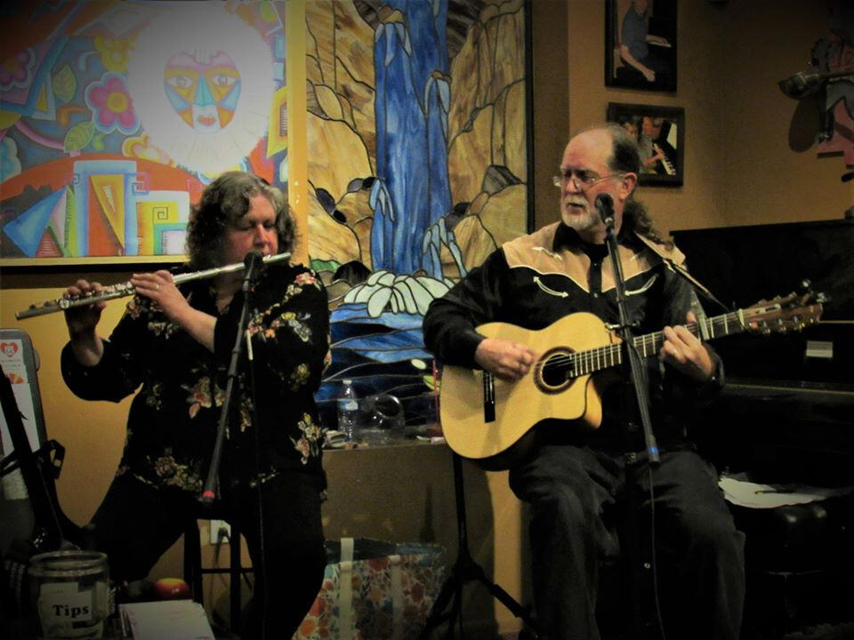 Thorn & the Rose plays acoustic folk and flute. The husband-and-wife duo is made up of Doug Barnett on guitar and vocals, and Barbara Barnett on flute, guitar, and backup vocals. They cover over 100 years of folk, pop, country, Celtic, and Americana as well as indie originals by Doug, who is an award-winning songwriter.