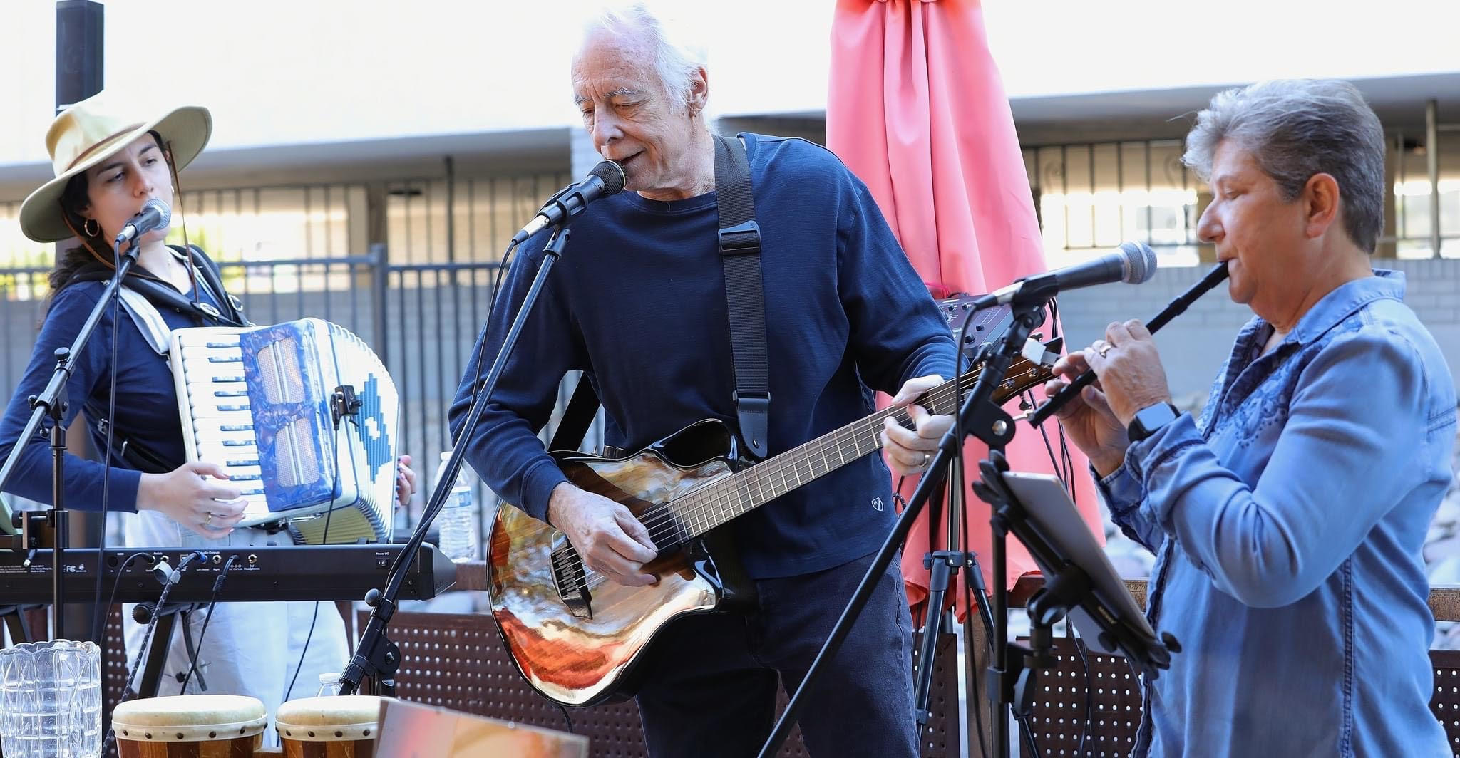 Long-John Jukebox is an eclectic band featuring Doug Long on lead acoustic guitar, John Diggs on acoustic guitar and vocals, Susan Schlappi on flute and vocals, and Eddie Jay on harmonica. With 60 years of musical experience each, Doug, John, and Susan have performed in bands across Phoenix, LA, and Shanghai. Eddie Jay, a mainstay in the local blues scene, rounds out the group. Together, they deliver a passionate mix of rock, country, folk, and blues tunes, captivating audiences with their seasoned and heartfelt performances.
